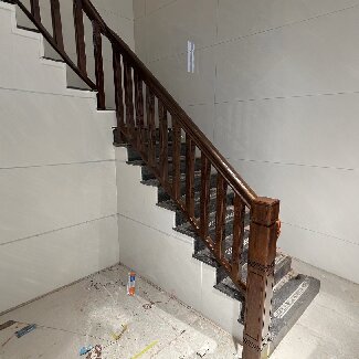 1. 施工前期的精准勘测与规划 三维空间建模: 安装团队需使用激光测距仪、BIM软件对安装现场进行毫米级扫描,生成包含梁柱位置、管道走向、地面平整度的三维模型。针对复式户型或异形空间,需提前模拟楼梯与吊顶、门窗的干涉风险,避免现场返工。 承重结构评估: 对混凝土楼梯井的强度进行回弹仪检测(要求≥C25等级),若为木质阁楼需加固龙骨(间距≤400mm)。崇州某案例中,因未检测老旧房屋承重墙,导致楼梯安装后出现0.5°倾斜,最终需拆除重做,损失超5万元。 2. 基础预处理与材料保护 地面找平与防潮: 铺设3mm厚自流平水泥,确保误差≤2mm/2m。在南方潮湿地区,需在地面涂刷聚氨酯防潮漆,并在楼梯龙骨下铺设活性炭防潮垫,避免木材吸湿变形。 成品保护机制: 对已完成的墙面、地面铺设珍珠棉+PVC硬质护板,防止安装过程中划伤。实木踏板需在工厂完成预涂装(三底两面),现场仅进行收边处理,减少粉尘污染。 3. 核心安装工艺标准 龙骨固定规范: 主龙骨采用膨胀螺栓(直径≥10mm)与墙体连接,间距≤800mm;次龙骨与主龙骨通过榫卯+金属角码双重固定,确保承重≥500kg/m²。某高端项目因龙骨间距超标,导致楼梯在多人通行时产生共振,最终更换加厚龙骨解决问题。 踏板拼接精度: 采用“无钉拼接”工艺,踏板间缝隙≤0.3mm,通过暗藏燕尾榫与木胶固定。旋转楼梯需确保每级踏板高差≤2mm,否则易引发眩晕。崇州某企业引入激光校准仪,将安装误差控制在±1mm内。 4. 智能模块专项安装要求 传感器隐蔽布线: 毫米波雷达、压力传感器等设备的线路需预埋于龙骨内侧凹槽,外覆防火套管。线路接口采用航空插头,支持后期拆卸维护。某项目因线路外露,被客户以“影响美观”为由索赔。 系统联调测试: 安装完成后需进行72小时压力测试(模拟200kg负载),同时调试智能灯光、安防联动等功能。例如,验证跌倒监测系统能否在0.3秒内触发报警,并测试与手机APP的通信稳定性(丢包率需<0.1%)。